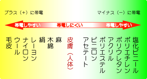 この繊維の組合せが離れているほど静電気が発生しやすくなります。